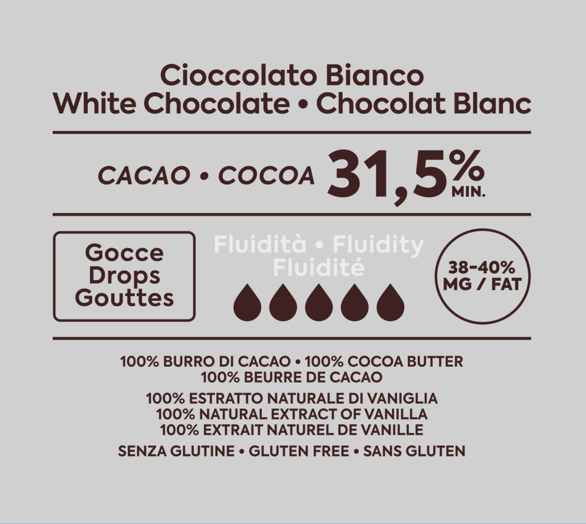 Висока течливост. Перфектен за създаване ганаш, бонбони, декорация, пластиченшоколад, както и занаятчийски шоколад под формата на барове.