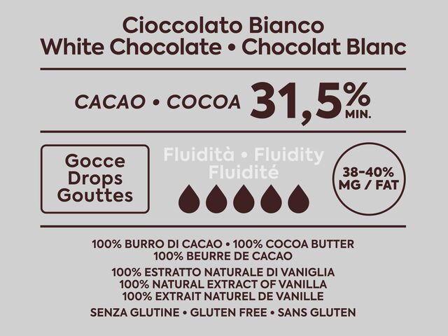 Средно ниска течливост. Перфектен за създаване на великденски шоколадови яйца,ганаш, бонбони, декорация, пластиченшоколад, както и занаятчийски шоколад под формата на барове.